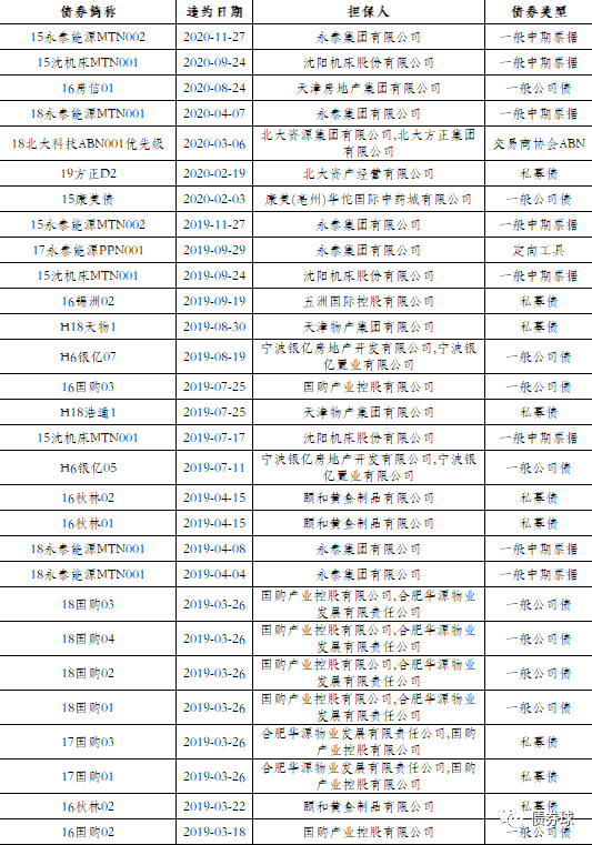 一、外部担保债券违约情况