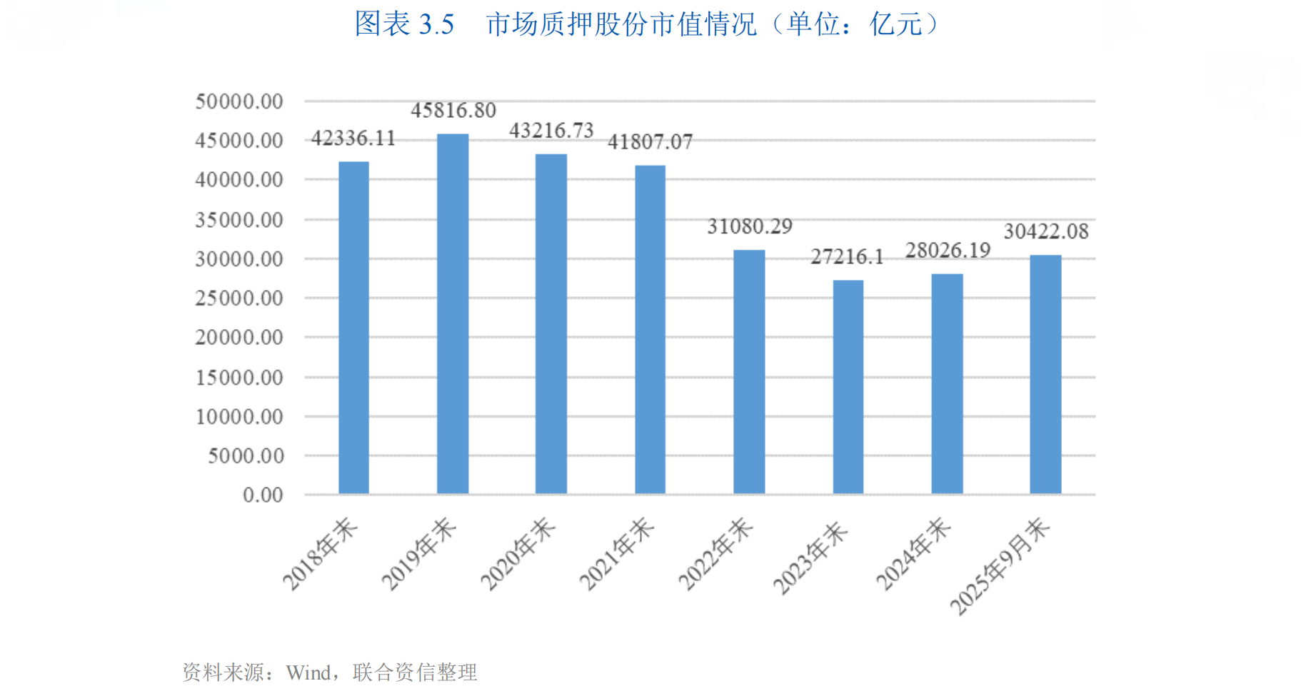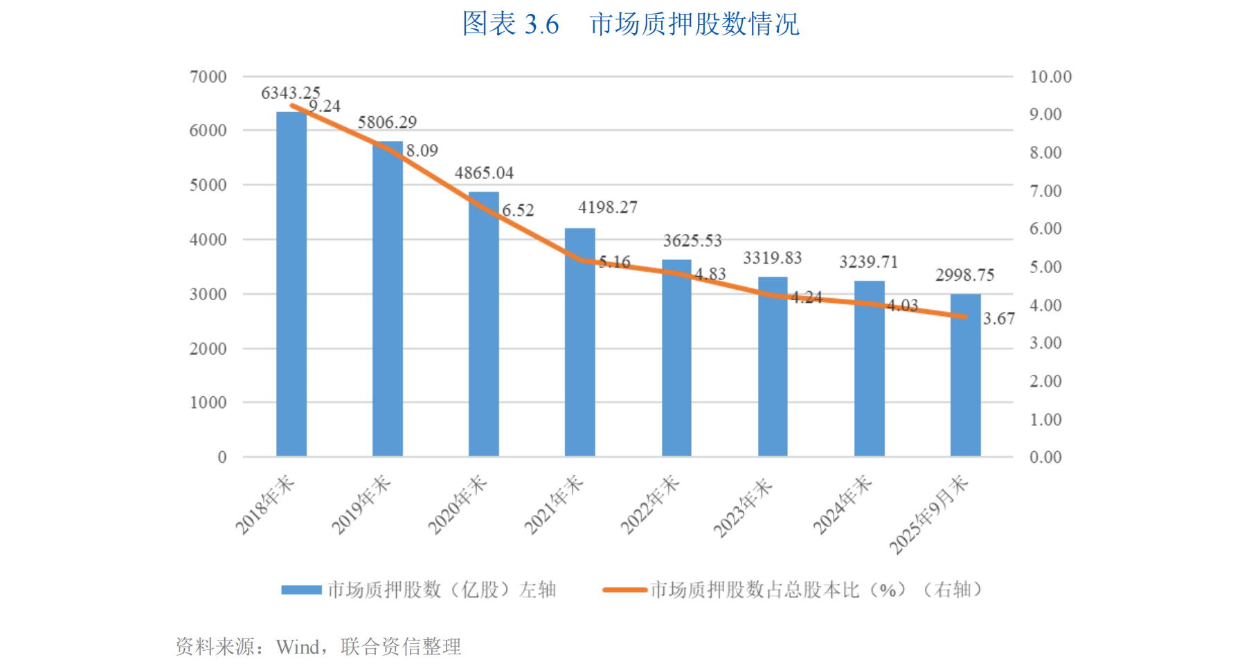 截至2025年9月末,市场质押股份市值合计3.04万亿元,较上年增长8.55%,市场质押股数占总股本比例为3.67%,较上年末下降0.36个百分点,占比处于较低水平,整体风险可控。