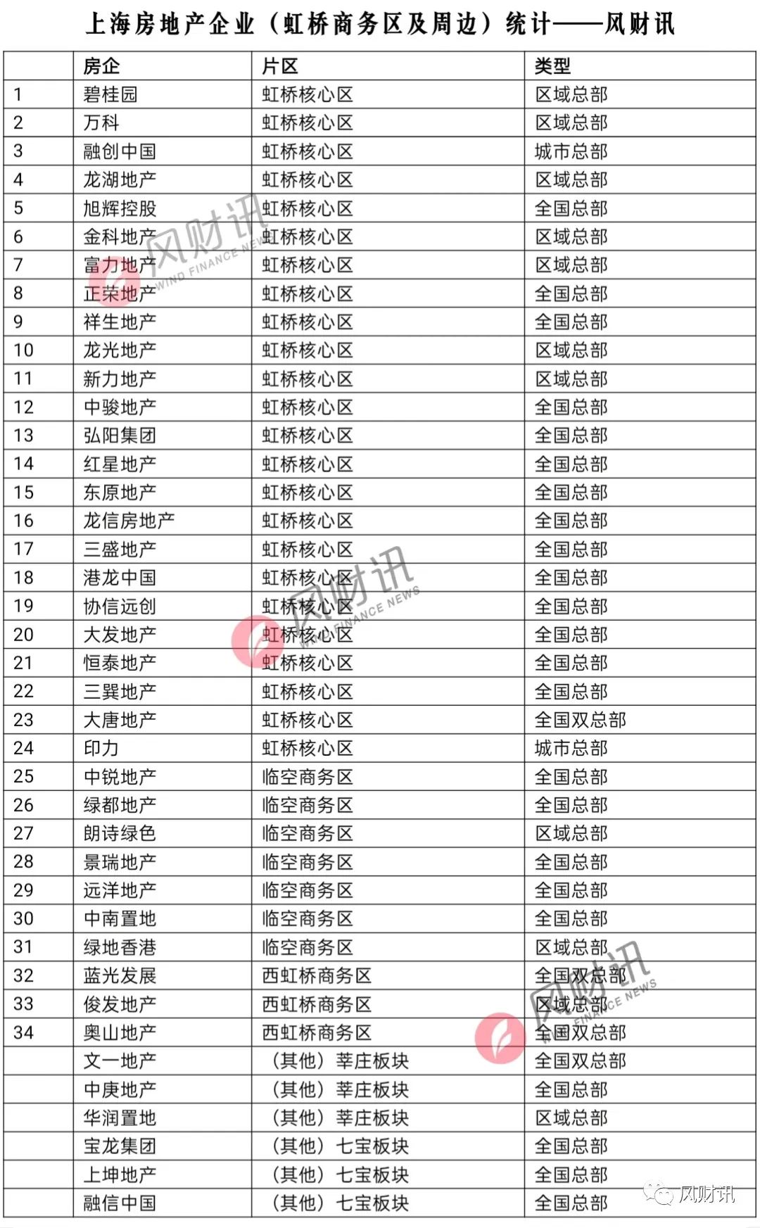 目前上海虹桥商务区(含临空商圈)的房企至少32家,一半以上是近两三年新进的。