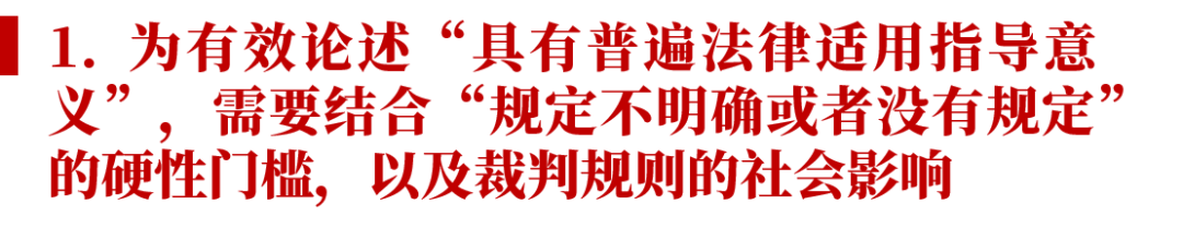 仍有待进一步观察的是,届时最高人民法院所作出的裁判,是否会和指导性案例一样归纳“裁判要点”?如果有,是否仅裁判要点具有法律拘束力,还是整个裁判文书确定的各项规则均具有法律拘束力?如果最高人民法院采纳后者,我国法律界还将需要引入案例规则的归纳、案例事实的对比、案例规则的演绎适用等案例法国家的法律技巧。